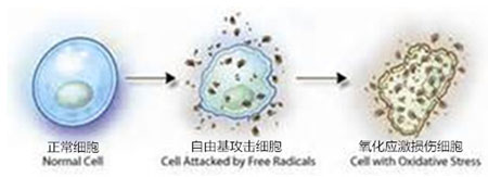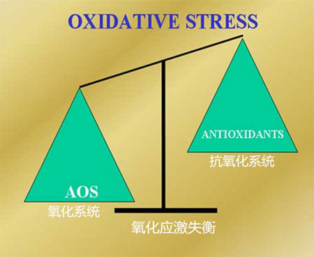 氧化应激(OS)源于体内生化反应及环境中的紫外线辐射、污染等诸多因素引发体内活性氧、自由基(ROS)生产过多,超越过内源性抗氧化防御系统对其清除的能力。机体内的氧化与抗氧化系统失去了“动态平衡”。过多的ROS,氧化损伤生物大分子,直接、间接氧化损伤细胞DNA、蛋白质和脂质,导致过早衰老及病症。