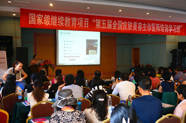 我公司受何黎教授邀请,参加了此次培训会议,并在会场布置了宣传展台,以利于来自全国各地的学员对产品进行深入细致的了解。在第一天会议的上午,何黎教授就我公司产品向培训班学员作了《首博尔®谷胱甘肽靓肤凝胶在皮肤美容领域的新应用》主题演讲,给各地学员留下了深刻的印象!