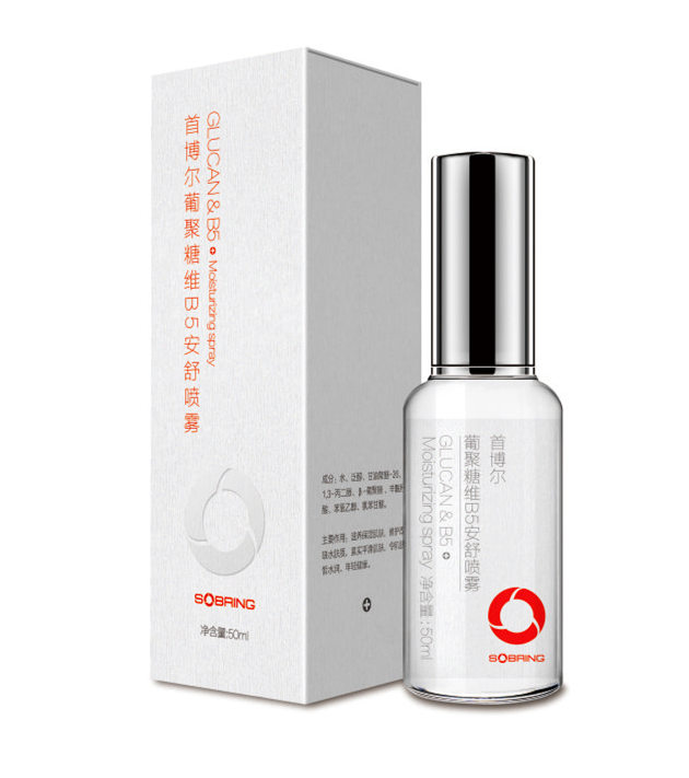 首博尔创新研发针对敏感性皮肤“首博尔葡聚糖维B5安舒喷雾”,优选葡聚糖与维B5,双重修复因子,瞬间舒缓敏感,修复屏障。