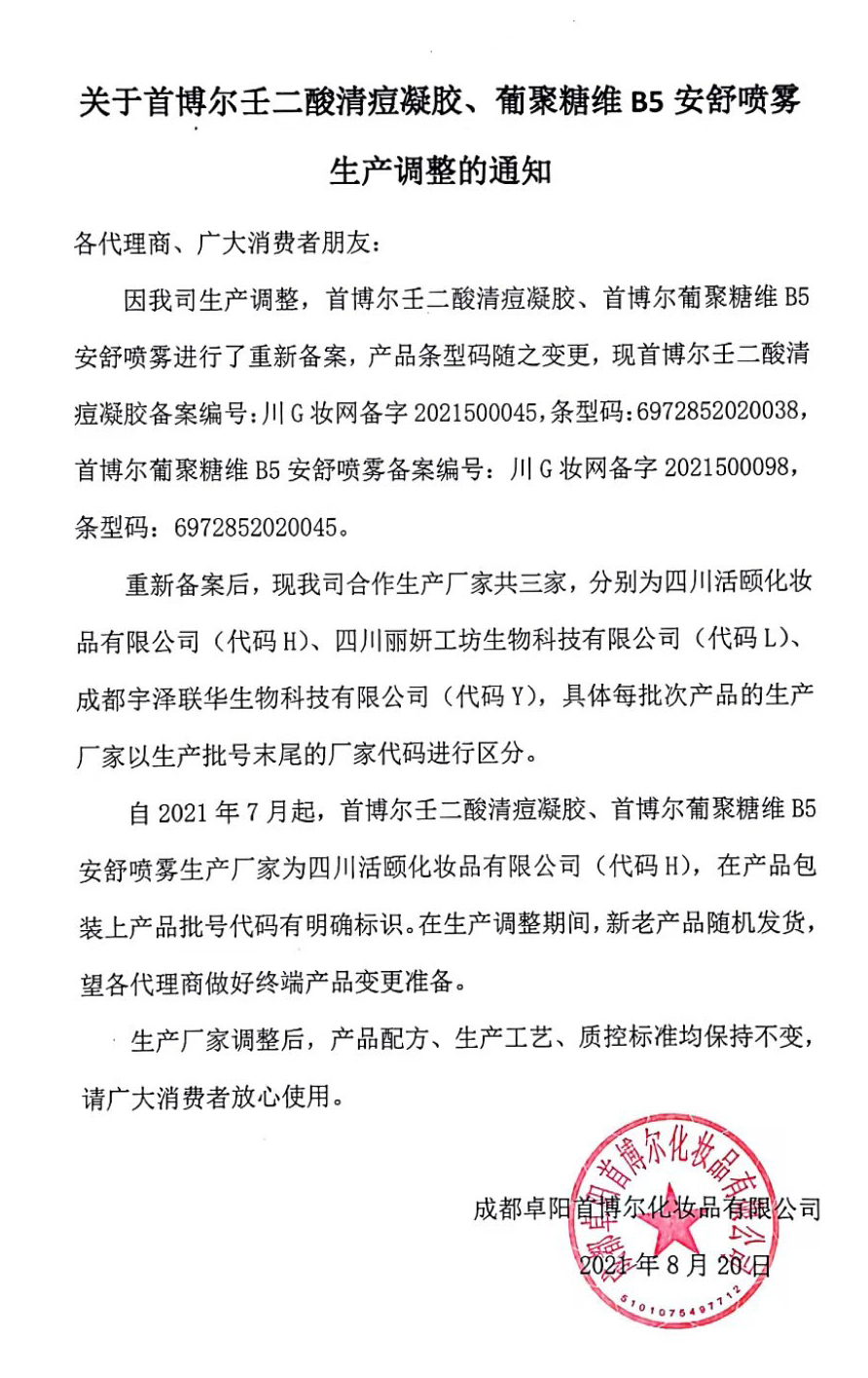 1.1 首博尔壬二酸清痘凝胶备案信息